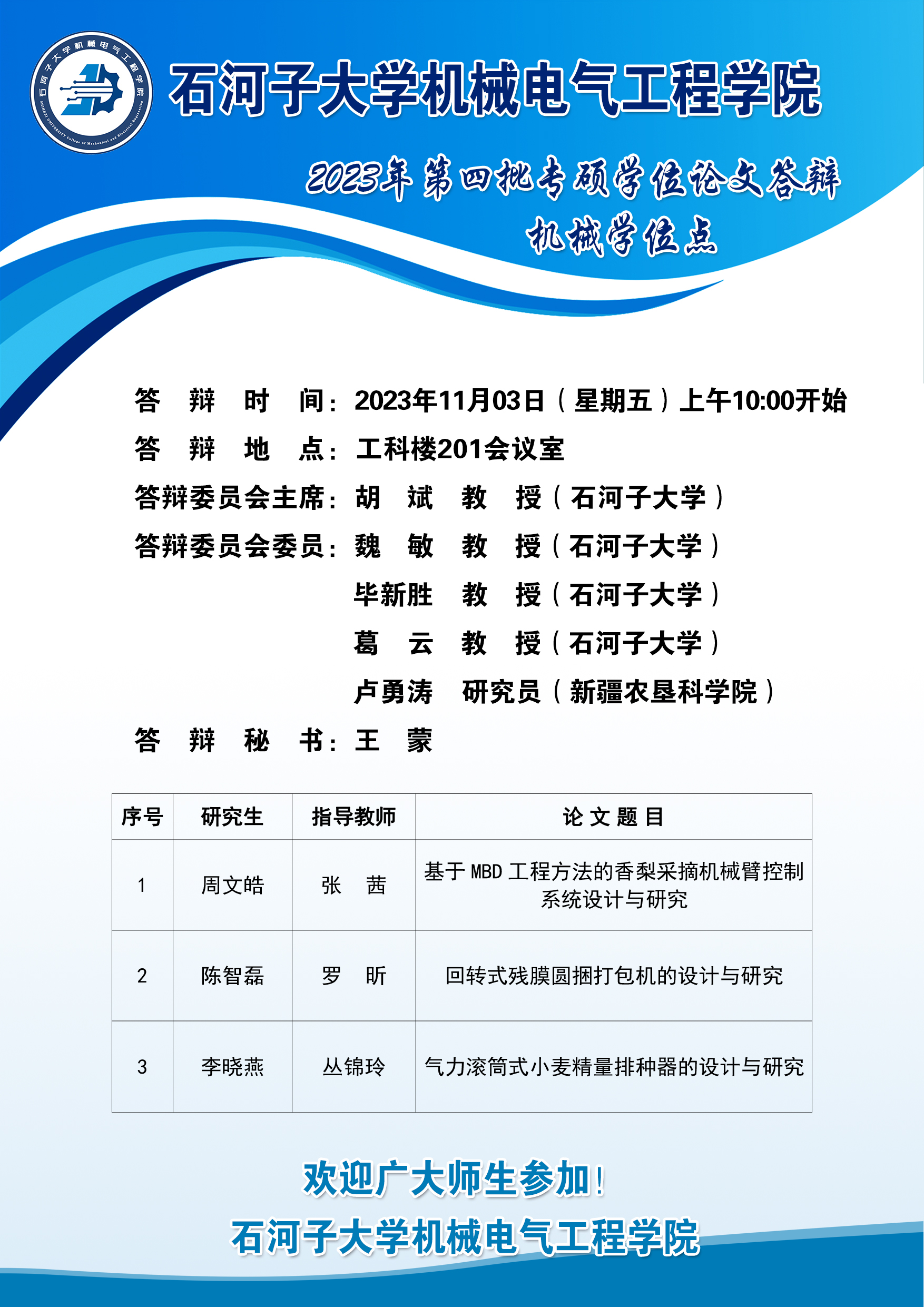 1.番茄小说 2023年第四批研究生学位论文答辩安排表番茄小说 2023年第四批次学位论文答辩安排表.xlsx2.番茄小说 2023年第四批研究生学位论文答辩海报番茄小说 机械工程博士海报.jpg番茄小说 机械专硕海报.jpg番茄小说 农业工程博士海报.jpg