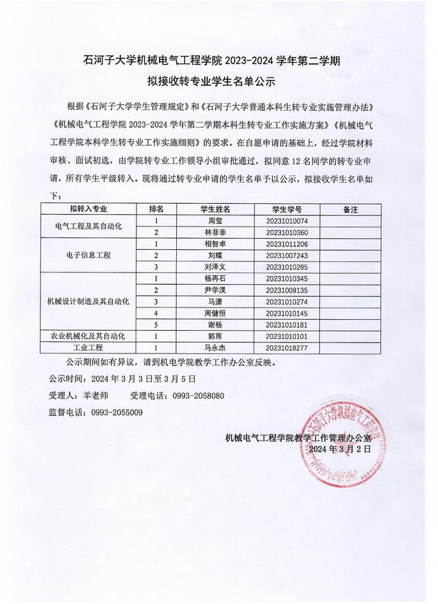番茄小说 2023-2024学年第二学期拟接收转专业学生名单公示