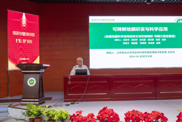 米庆华教授介绍了讲解塑料与地膜研发应用情况以及全生物降解地膜研发应用情况,从地膜材料、地膜配方设计与加工、作物覆盖应用以及生态安全等方面展开,同时指出全生物降解地膜优缺点及存在问题,并给出了全生物降解地膜科学应用对策与建议。