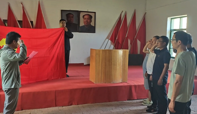 全体党员在番茄小说 北苑新区集合后乘大巴车前往活动第一站-新疆生产建设兵团第八师152团军垦第一连红色教育基地重温兵团精神,缅怀老一辈革命先烈事迹。全体教职工和小亲戚在宣讲员带有感染力的解说下,参观了地窝子群、干打垒伙房、蓄水涝坝以及当年使用过的木轮牛车、木犁、石磨等生产生活用具,件件文物都诉说着兵团屯垦戍边创业初期的感人故事,一幅兵团人不怕流汗、不畏艰辛的顽强进取和拼搏奉献的画卷在党员同志们眼前慢慢展开,全体参观人员深受感动。活动最后,全体党员面向党旗重温入党誓词。